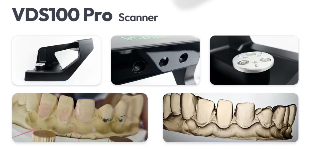 El escáner de mesa VDS100 PRO está especialmente diseñado para brindar soluciones odontológicas especializadas. El proceso de calibración y escaneo es totalmente automático. El escáner ofrece un escaneo 3D preciso y una gestión de pedidos eficaz, ofreciendo a los clientes un flujo de trabajo sencillo e intuitivo. Es compatible con múltiples aplicaciones de escaneo dental, como pilares, muñones, modelos de yeso, impresiones y articuladores.